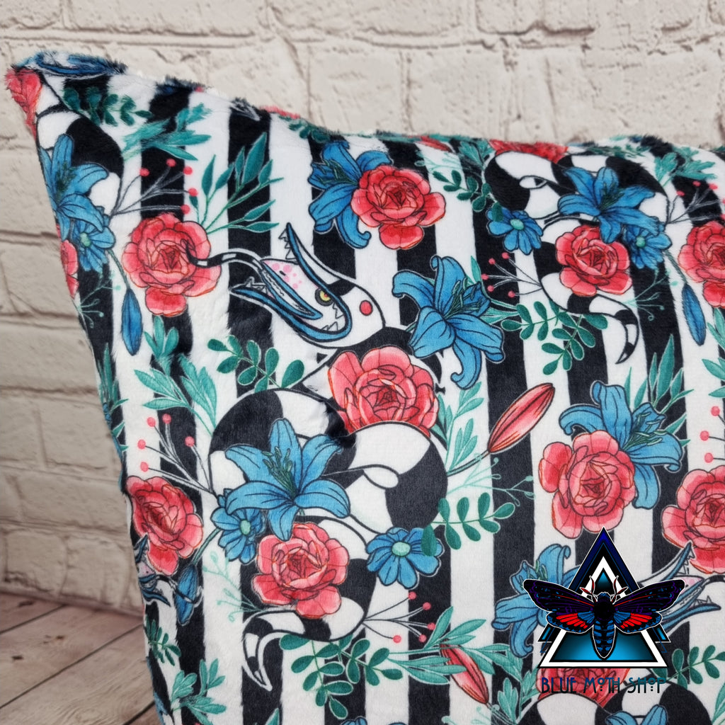 Floral Sandworm Beetlejuice velvety feel cushion cover.