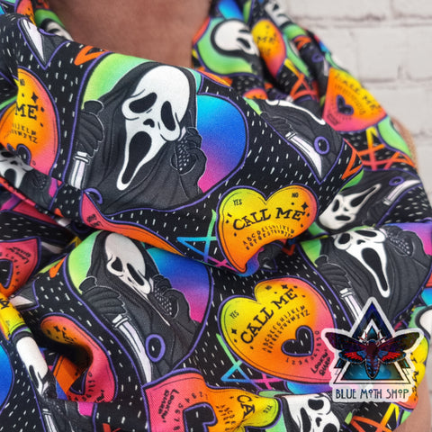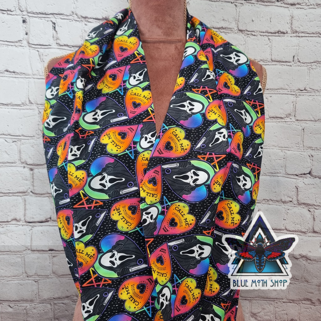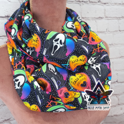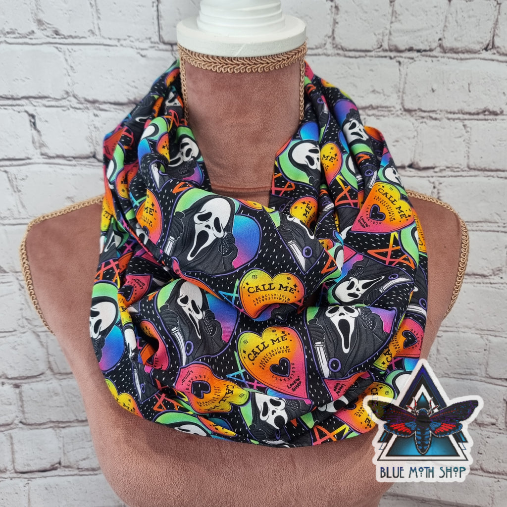 Add a touch of unique charm to your wardrobe with this beautiful, handmade infinity scarf featuring a gorgeous Scream Ghost print. Crafted from custom-printed fabric, it's perfect for gifting on birthdays, anniversaries, Christmas—or simply treating yourself!
